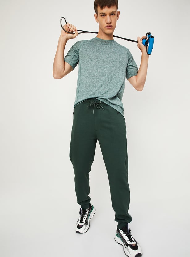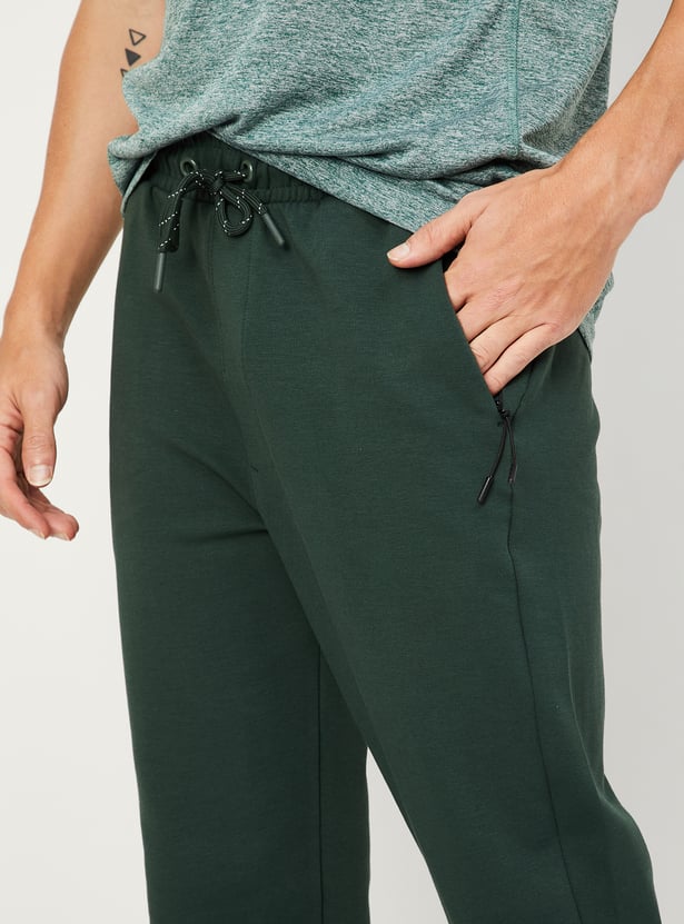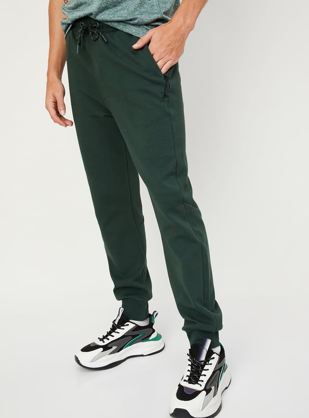Step up your game with this pair of sports joggers. Rendered in a solid tone, it has a drawstring waist, multiple zip pockets for convenience, and a cuffed hem.