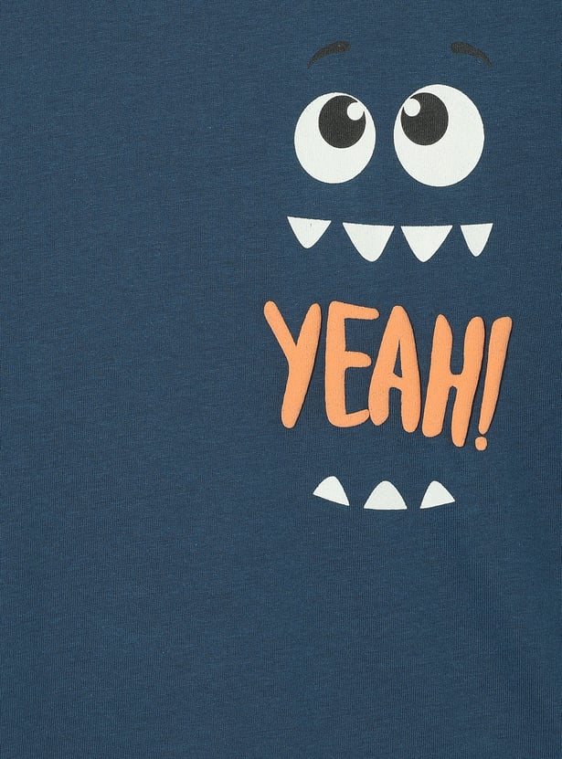 This playful T-shirt is sure to spark a smile on your little one. With its classic crew neck, adorable graphic print, and full sleeves, it's the perfect addition to bring a touch of fun to their everyday wardrobe.