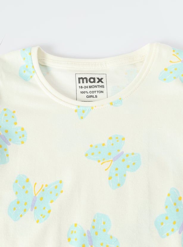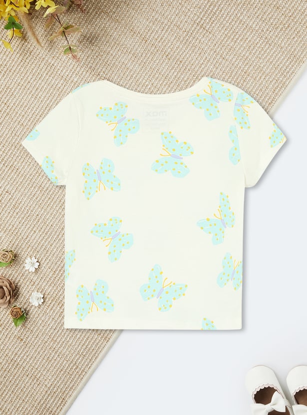 Add a pop of colour to her look with this vibrant T-shirt. Updated with all-over prints, this tee features a round neck and half sleeves, perfect for adding fun and style to her outfit.