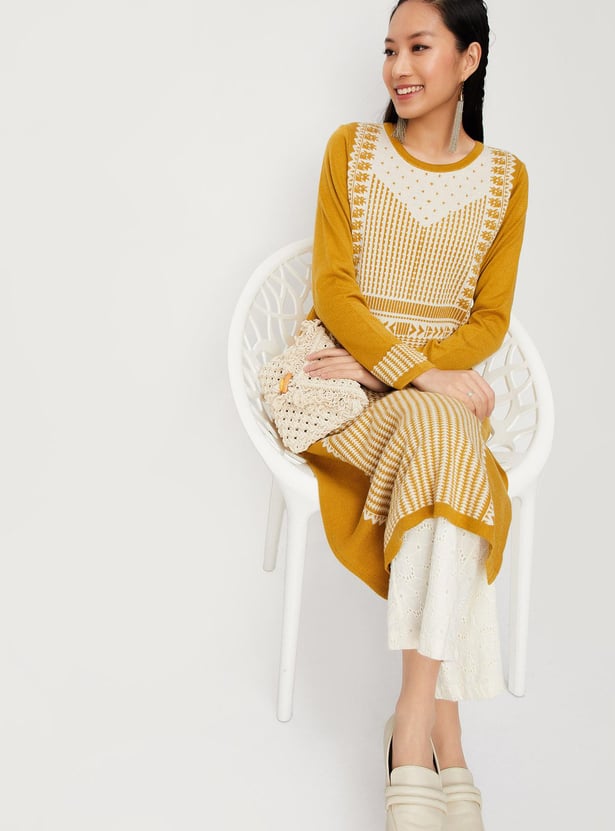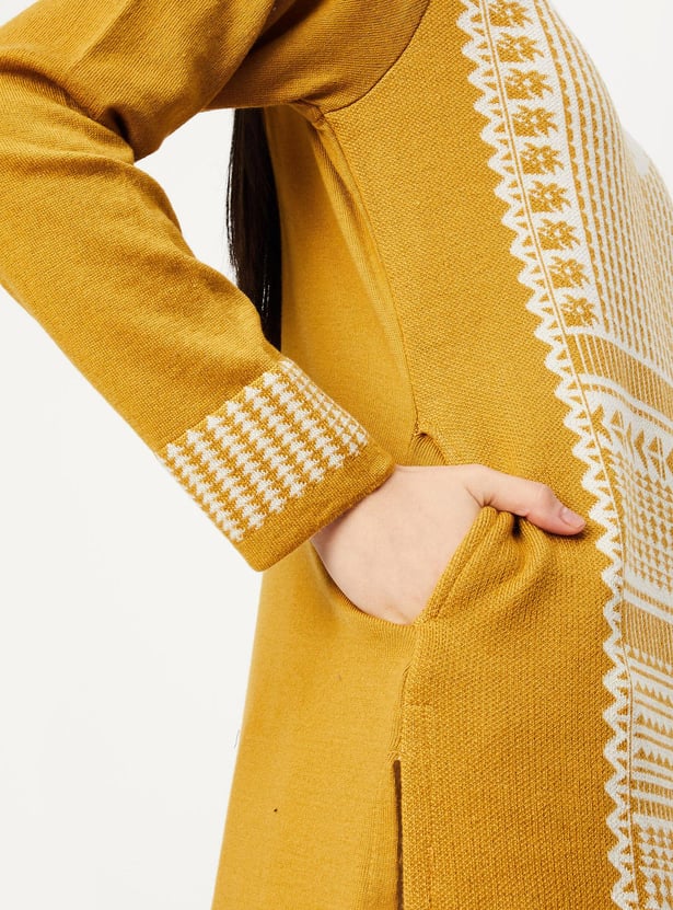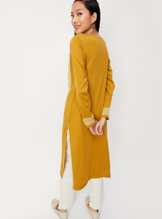 This jacquard kurta with a pocket is a stylish and practical addition to your wardrobe. The jacquard fabric adds an elegant touch, and the pocket provides functionality. Pair it with churidar pants and traditional mojari shoes for a classic and refined ethnic look that's perfect for celebrations and special events.