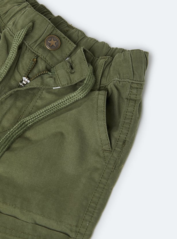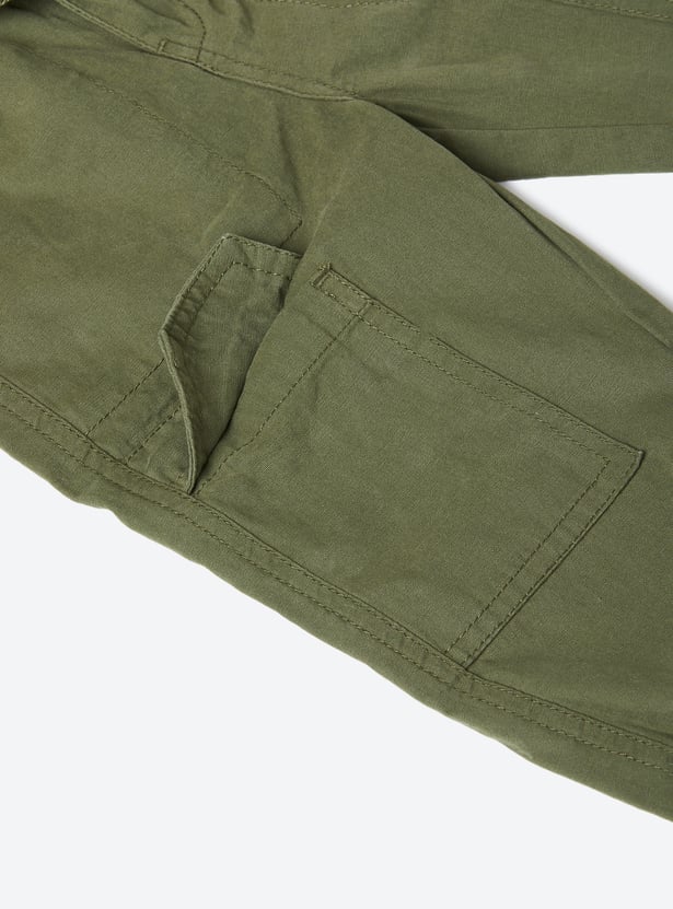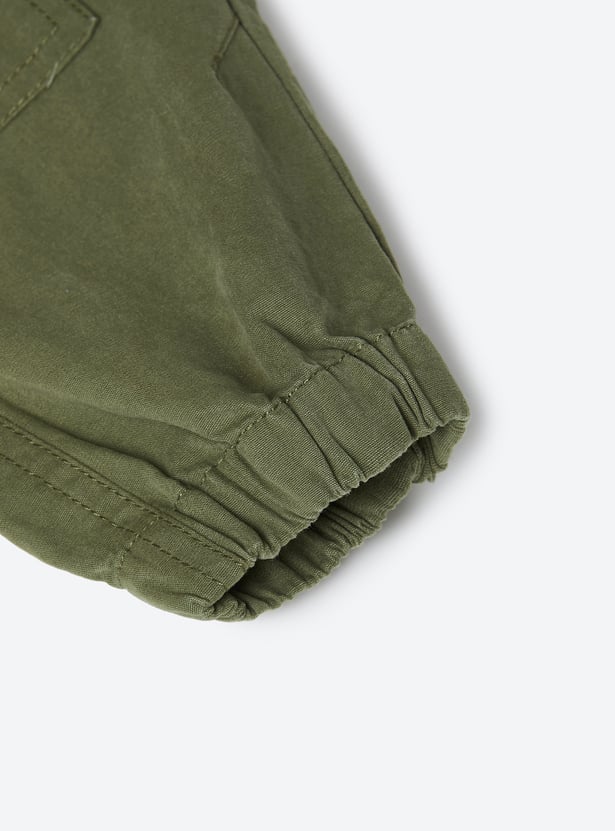 Gear him up for style and utility with this pair of joggers. It features three pockets for easy storage. The addition of a patch pocket and a stylish cargo pocket offer more room for essentials. The adjustable drawstring waist ensures a secure and customisable fit.