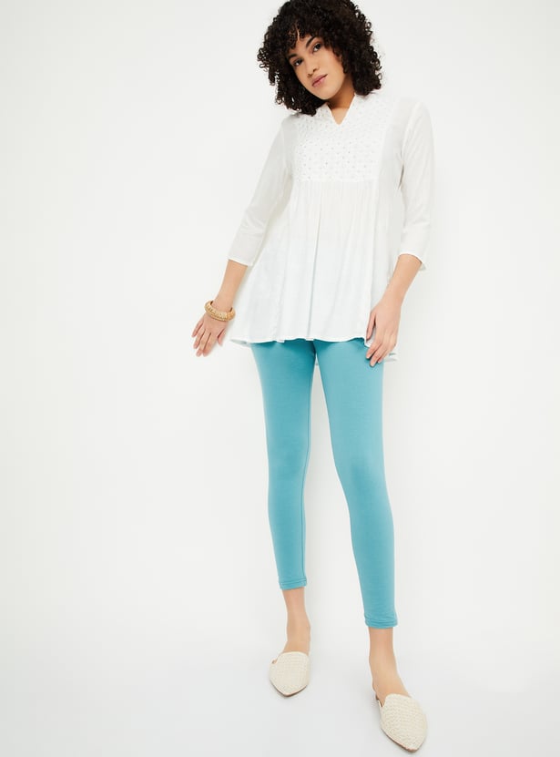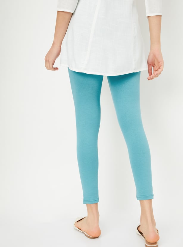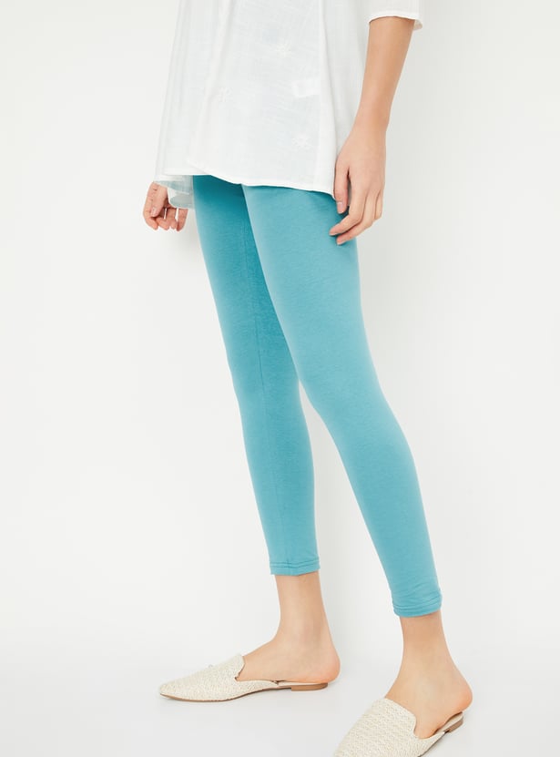 Elevate your essentials with these ankle-length leggings, boasting a solid surface and an elasticated waistline. They count as a stylish staple for any wardrobe, offering comfort and versatility.