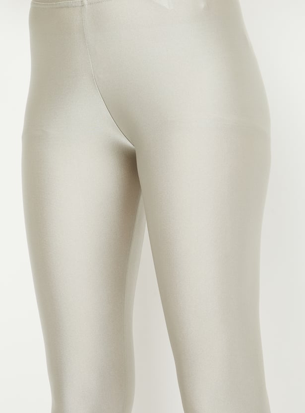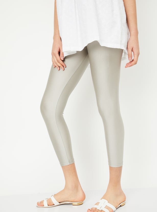 Elevate your wardrobe with these stylish ankle-length leggings, featuring a solid surface and an elasticated waistline for a comfortable fit. This pack of two ensures you have the perfect staples for any casual ensemble.