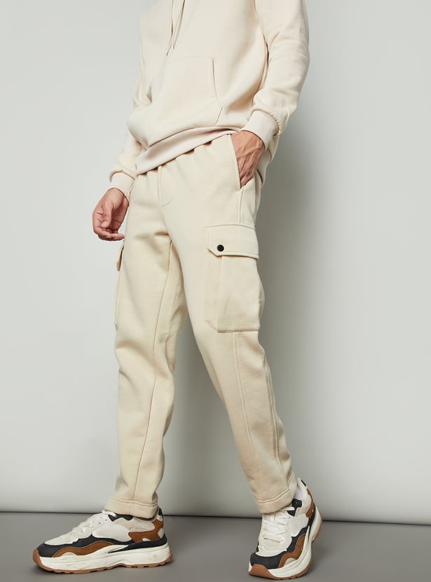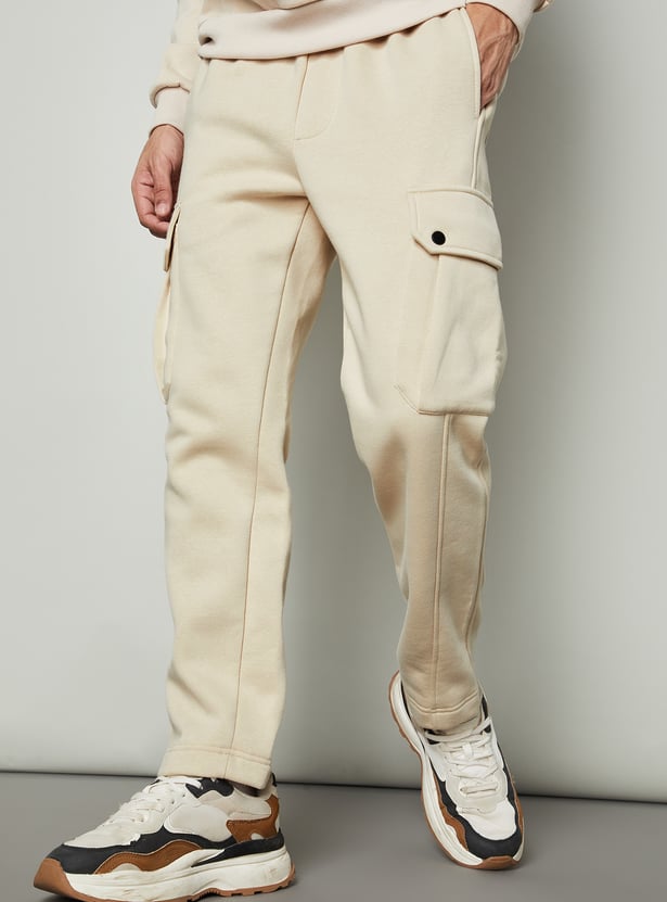Men Relaxed Fit Solid Cargos