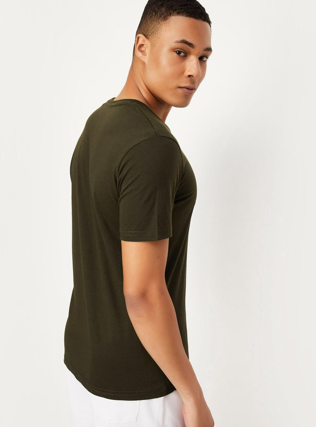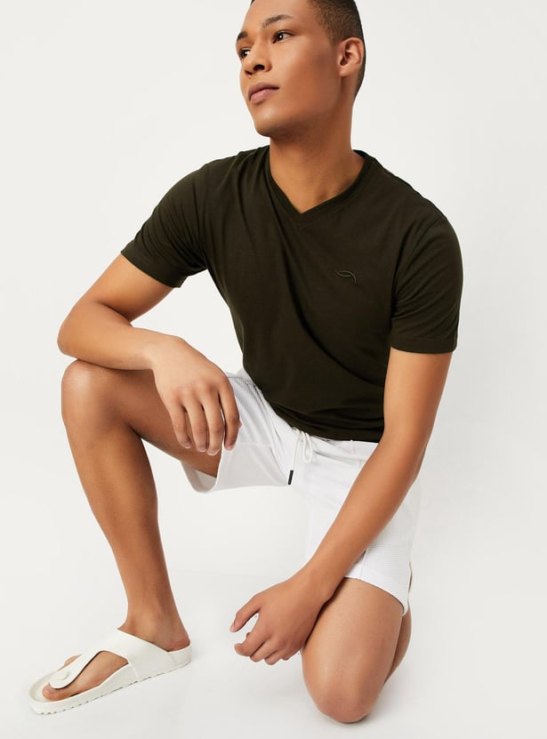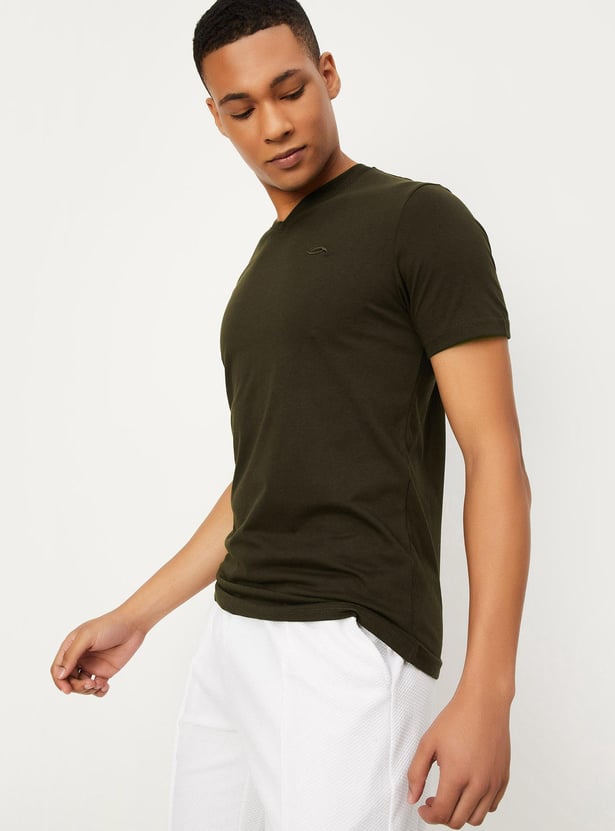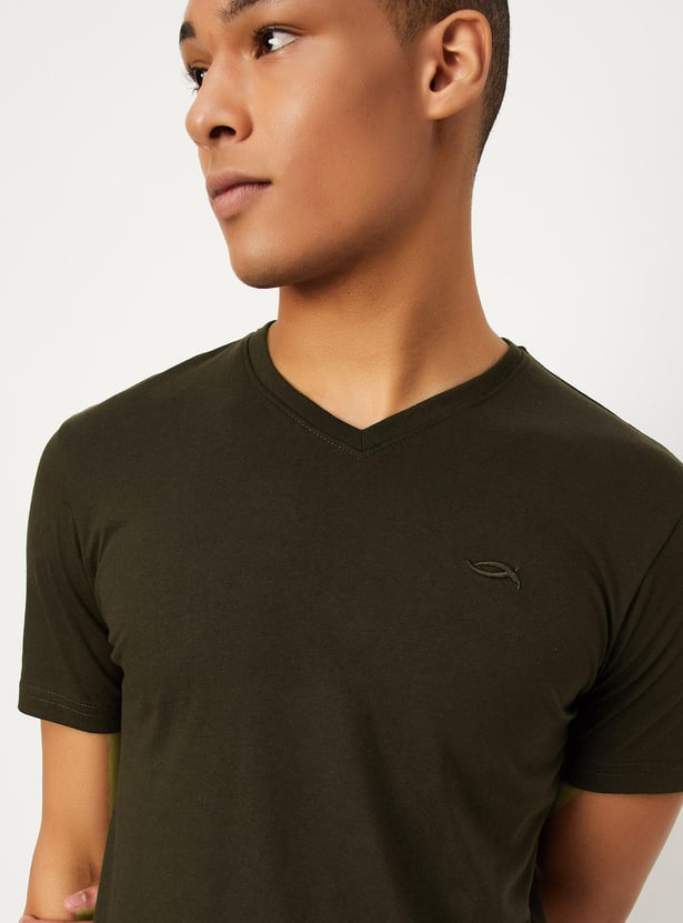 This solid t-shirt with half sleeves and a V-neck, gives a trendy style to simply boost your casual look. Style it with a pair of jeans and sneakers for a stylish look.