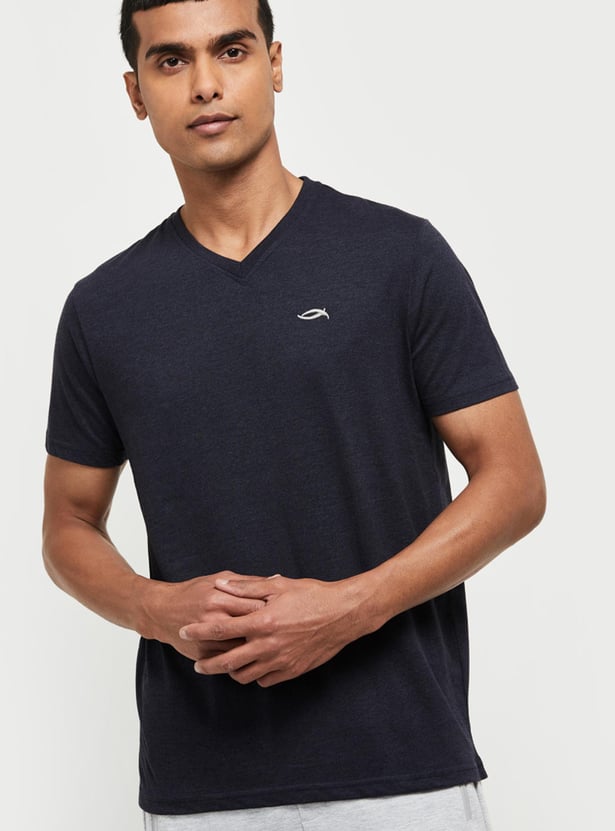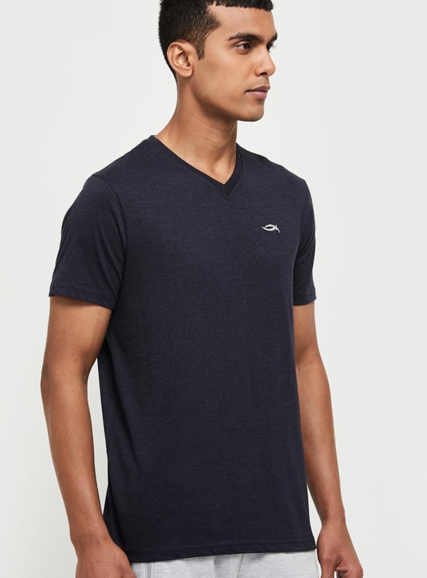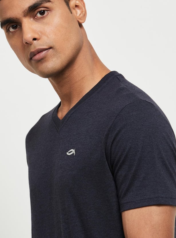 This solid T-shirt with short sleeves is tailored from soft fabric to offer you snuggly comfort.