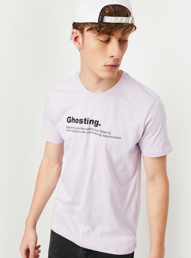 This slim-fit T-shirt will make you look stylish. It features a typographic print, half sleeves, and a crew neck. For a trendy weekend outfit, team this tee with jeans and sneakers.