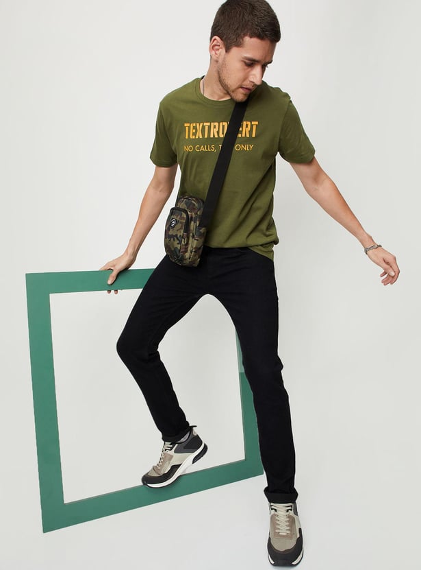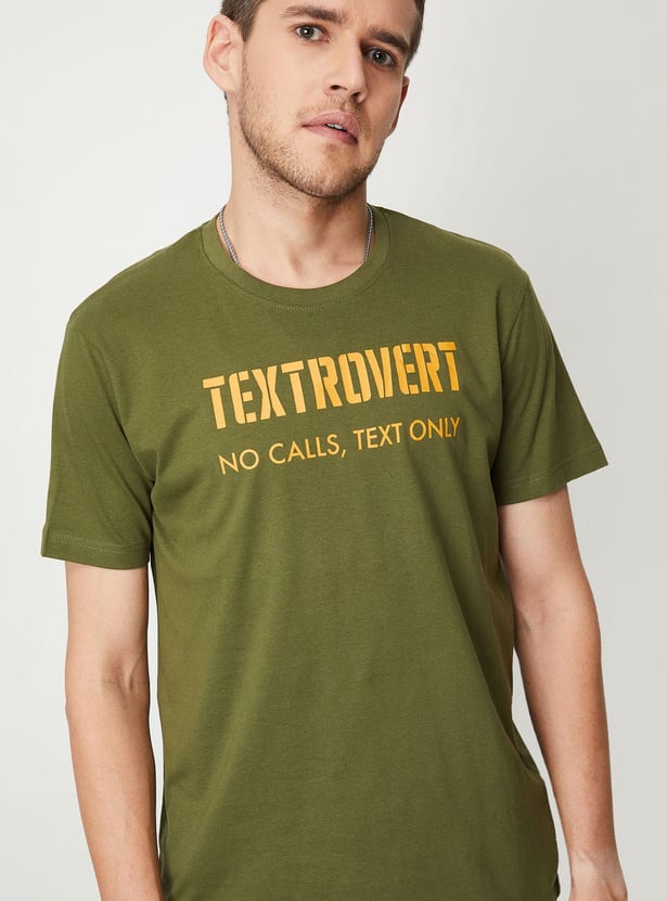 Men Typographic Printed Slim Fit T-shirt