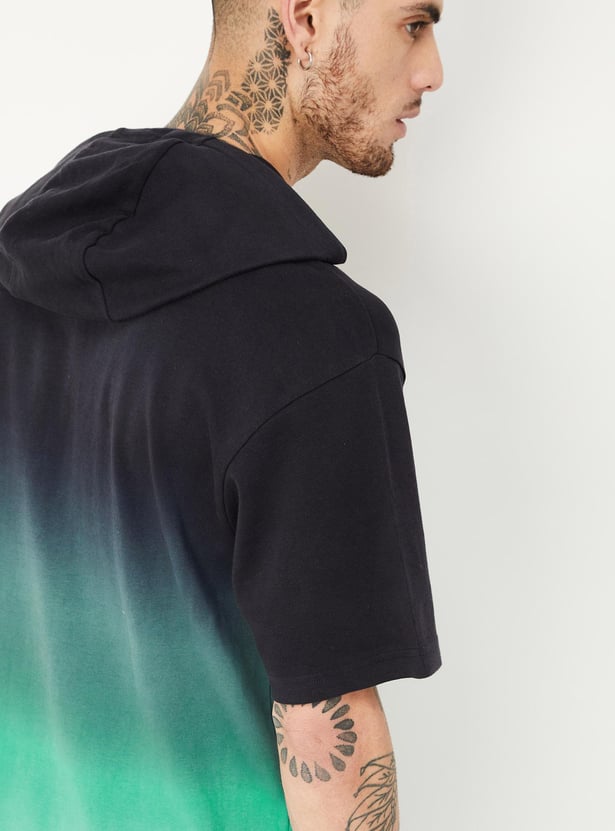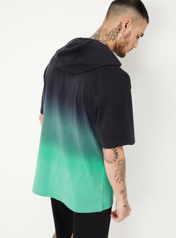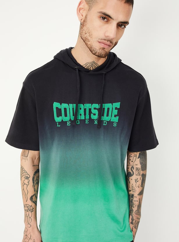 Step up your style game with this T-shirt, featuring a chest graphic, ombre surface, and a cosy hooded neck with half sleeves