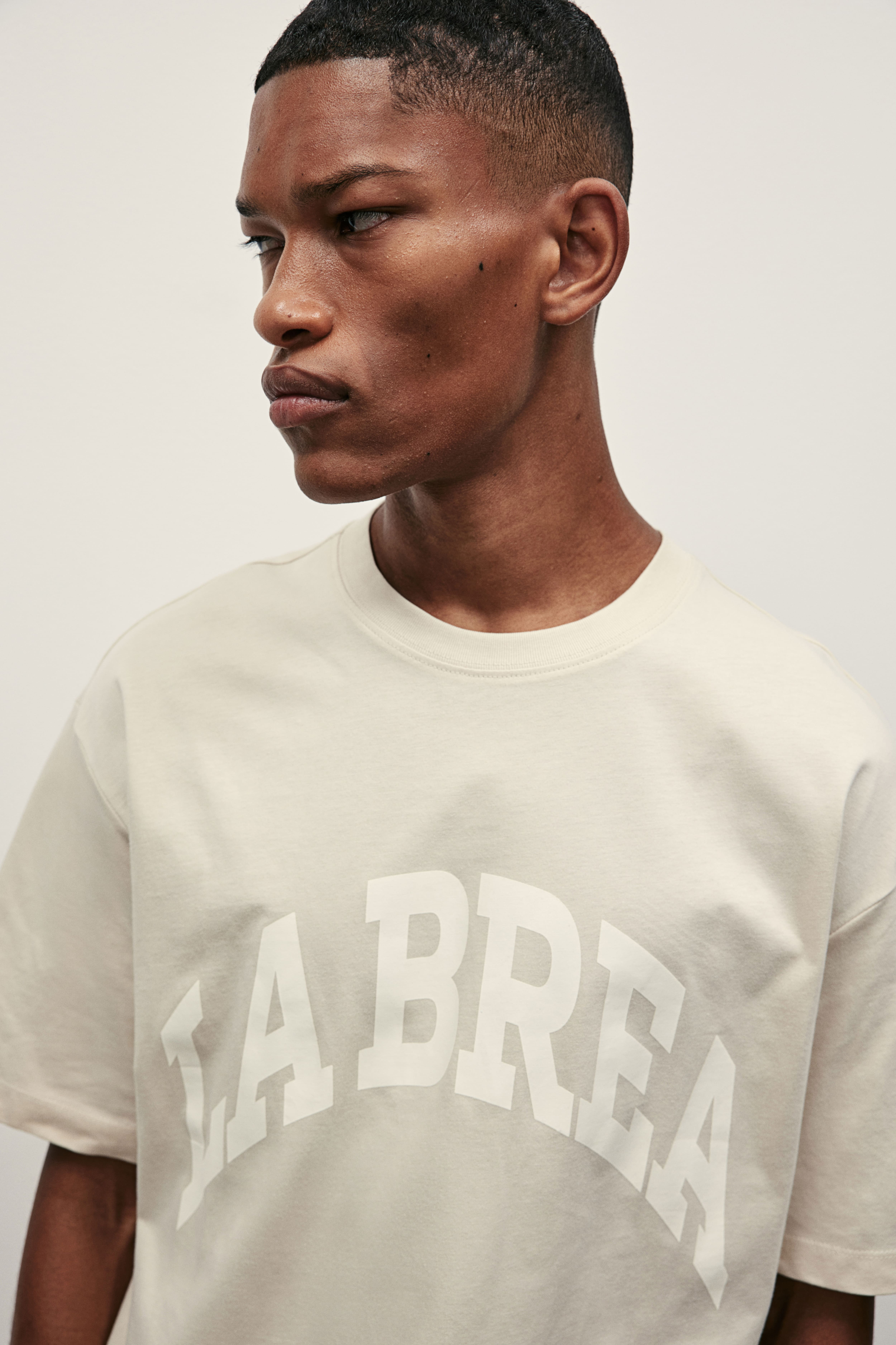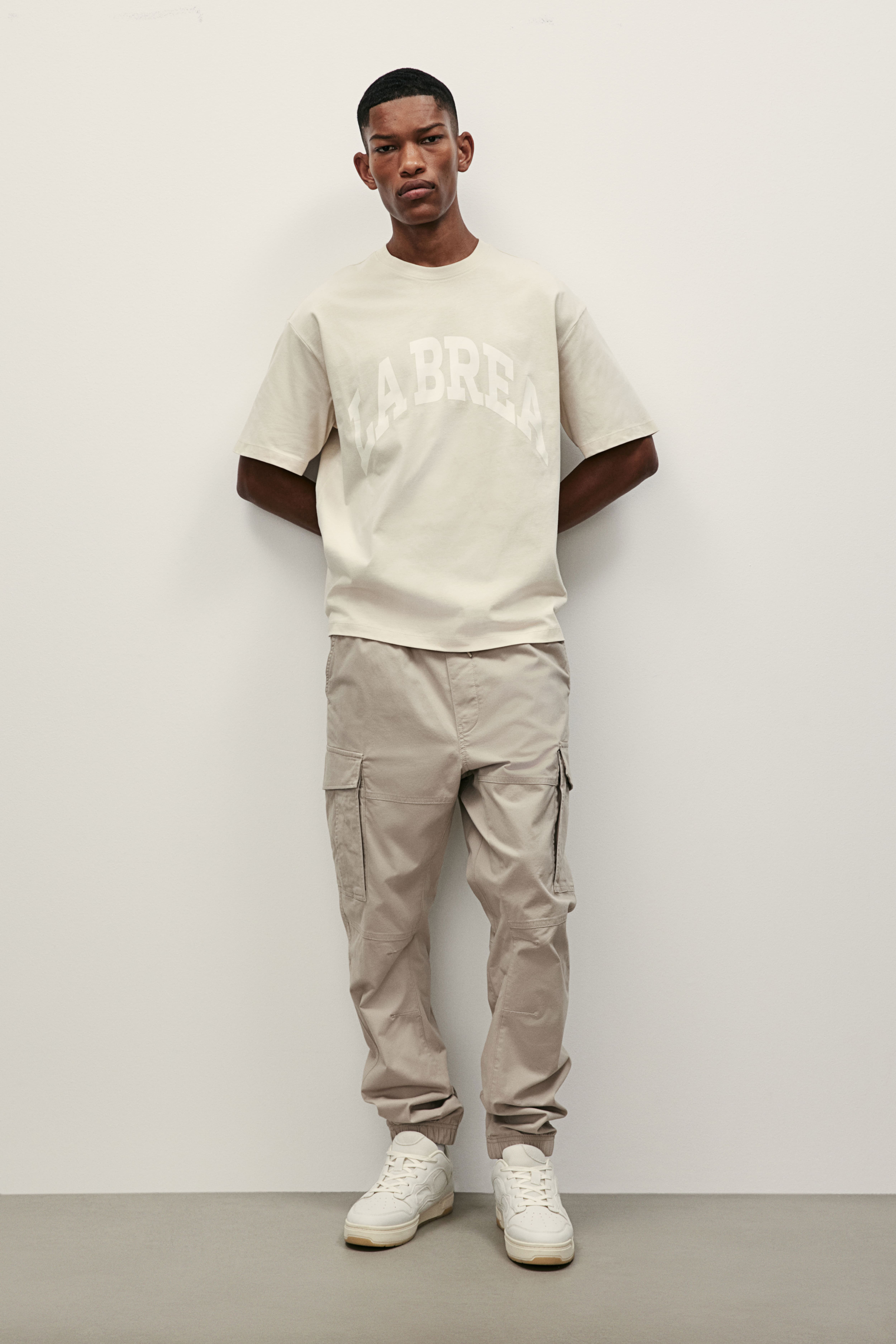 T-shirt in midweight cotton jersey with print motifs, round, rib-trimmed neckline, dropped shoulders and a straight-cut hem. Loose fit for a generous but not oversized silhouette.