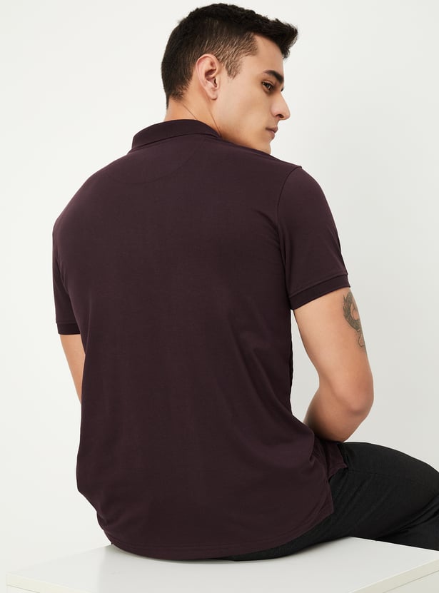 Enhance your style with this polo T-shirt. This textured T-shirt has short sleeves with zipper closure and a straight hem perfect for an uncompromised stylish look.