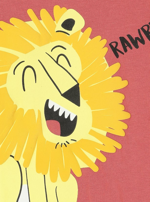 Roar into style and let the fun begin with this wildly adorable graphic-printed T-shirt. Jazz up your kid's casual wardrobe with its playful design, featuring half sleeves and a classic crew neck that’s perfect for adventures.