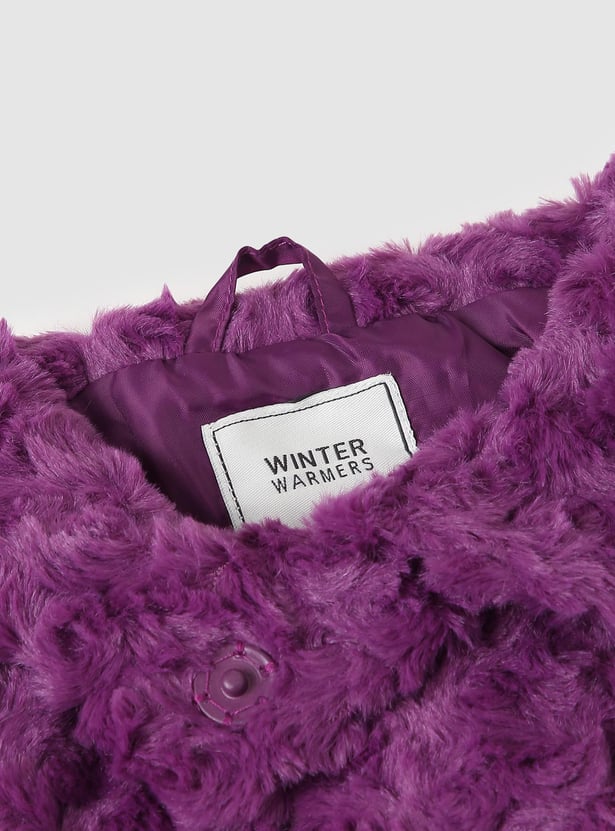 Dress up your kid for winter with this jacket. Featuring a rosette fur texture on the surface that keeps your little one warm through the day this jacket comes with a collared design and a sleeveless silhouette