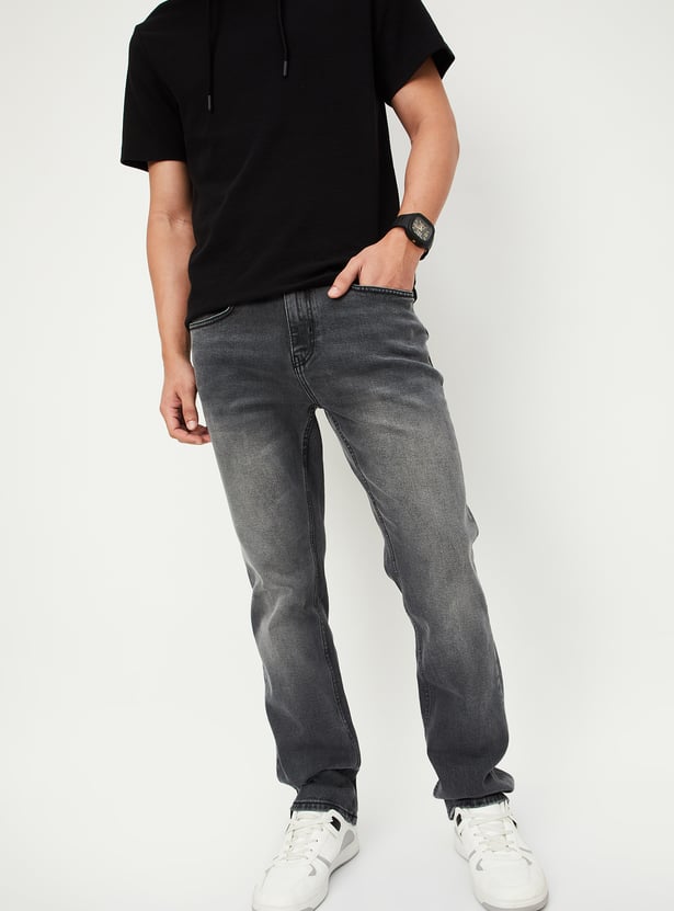 Jazz up your denim wardrobe with these regular-fit jeans featuring a washed surface, belt loop waist, and five pockets. They offer a modern and stylish silhouette that's perfect for versatile styling.