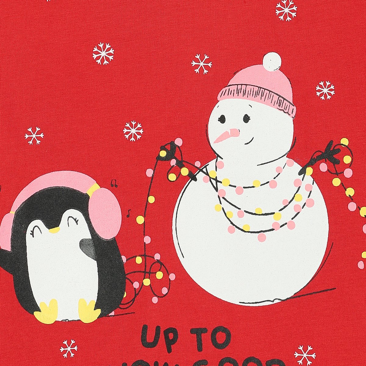 Get your little one ready for winter fun with this adorable T-shirt. Featuring a cheerful snowman print, a round neck, and half sleeves, this tee effortlessly combines comfort with festive flair. It's the perfect choice for holiday adventures and cosy days.
