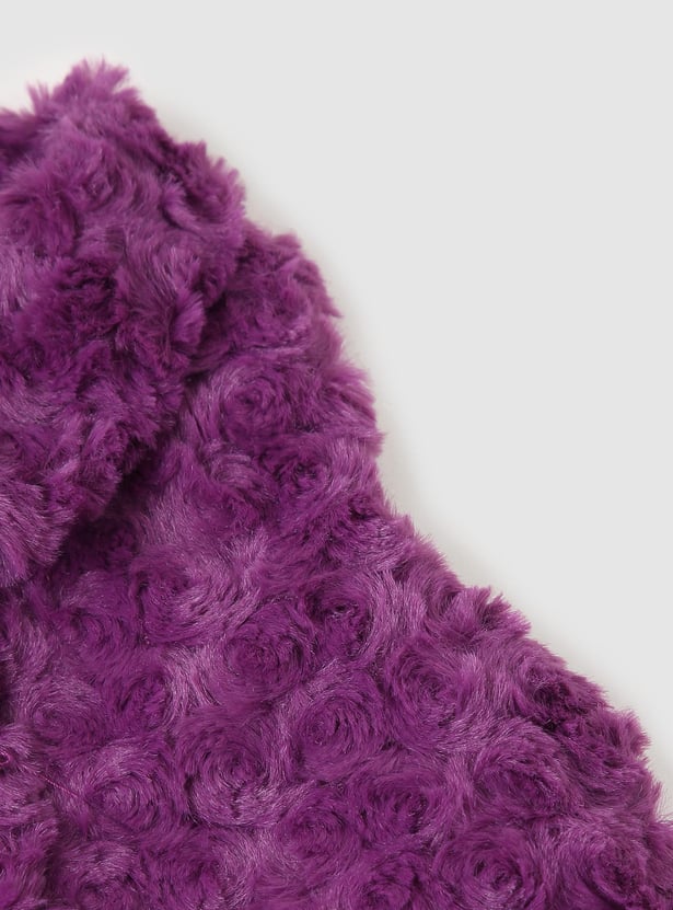 Dress up your kid for winter with this jacket. Featuring a rosette fur texture on the surface that keeps your little one warm through the day this jacket comes with a collared design and a sleeveless silhouette
