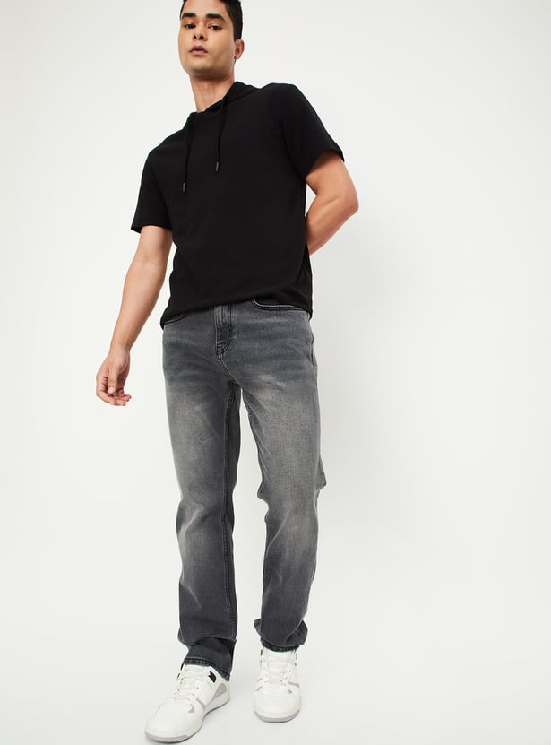 Jazz up your denim wardrobe with these regular-fit jeans featuring a washed surface, belt loop waist, and five pockets. They offer a modern and stylish silhouette that's perfect for versatile styling.
